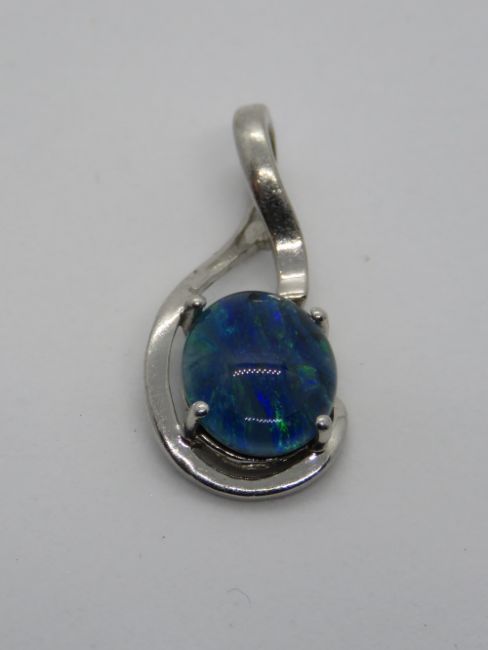 A silver and opal pendant, stamped 925 and measuring 22mm in length.
