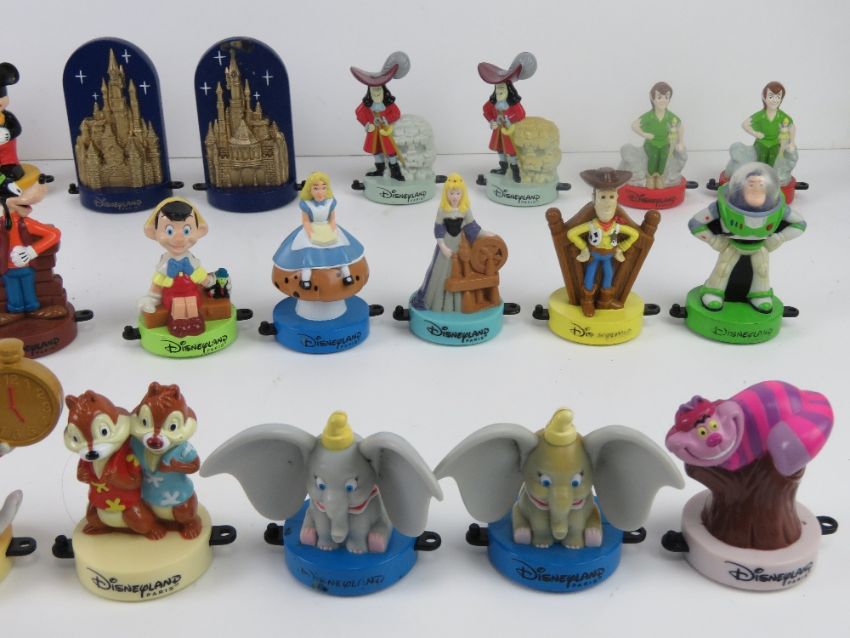 A large quantity of c1990s Disneyland Paris stamps for McDonalds inc Mickey and Minnie Mouse, Buzz Lightyear, Captain Hook, White Rabbit, Dumbo, Aladdin and Jasmine, Donald and Daisy Duck, Peter Pan, Cheshire Cat, Alice in Wonderland, Goofy and Pluto, etc.