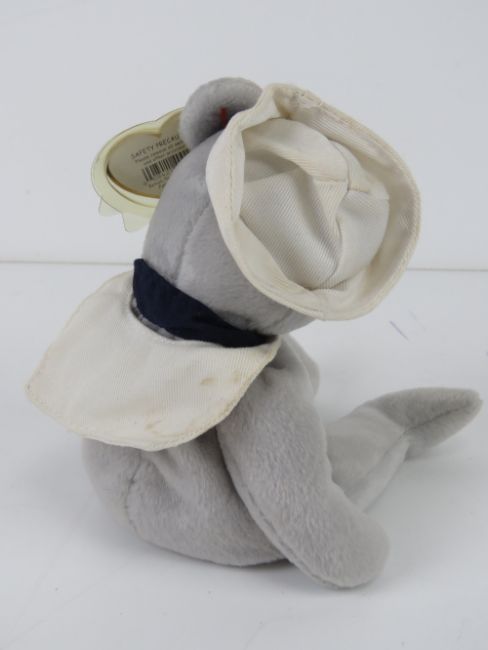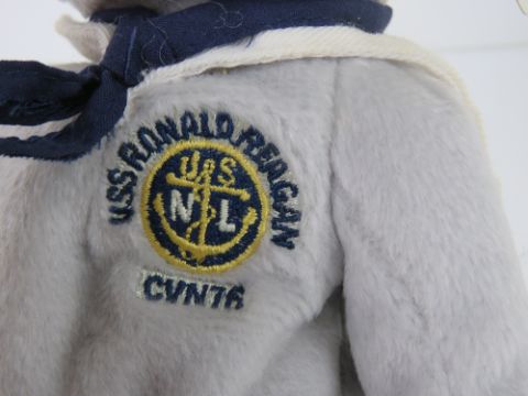 Ty Beanie Babies/Beanie Bears; 'Ronnie' with USS Ronald Reagan patch to chest, 10 year edition with tag, some marks to bib and hat.