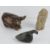 A carved stone pig figurine, 14cm in length, together with two other carved stone figurines.