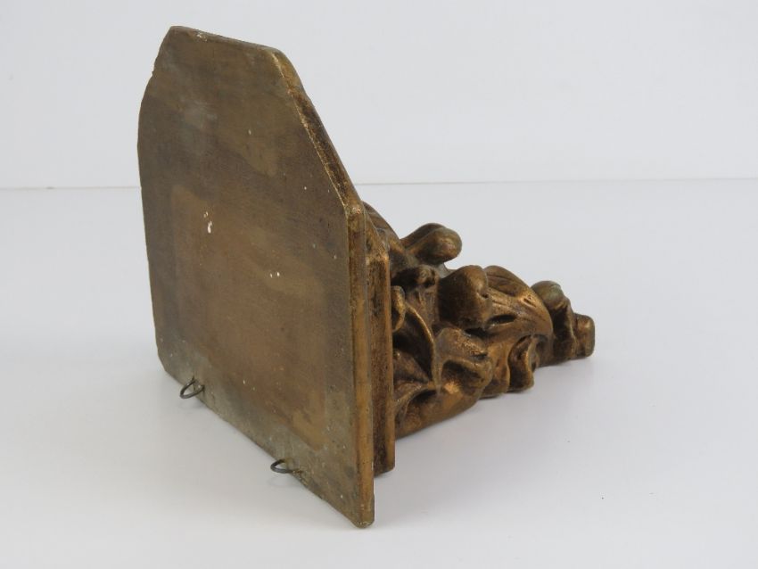 A gold painted cast resin decorative wall bracket, 21 x 20cm.
