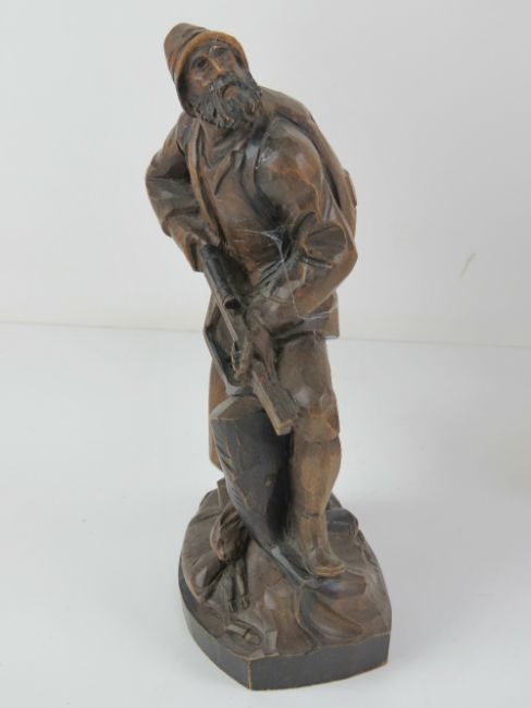 Four carved wooden figurines, 14-31cm high.