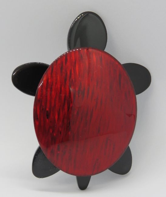 An overlaid plastic brooch in the style of Lea Stein in the form of a turtle, 7cm in length.