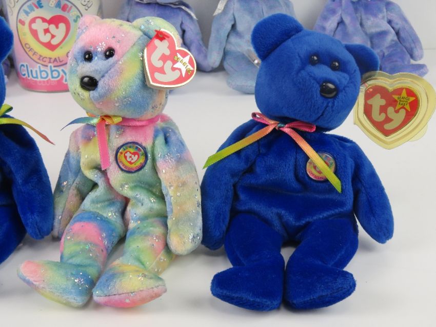 Ty Beanie Babies/Beanie Bears; Official Club bears; 'Clubbie' (x3 - one with loose tag), 'Clubbie II' (x3 with tags, one without tag and one with loose tag), 'Clubbie IV' in original protective box and tag and 'Clubbie VI' with tag. Ten items.