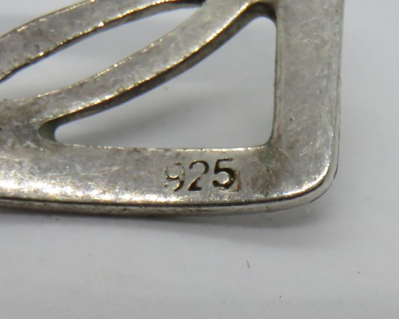 A HM silver bangle having open leaf pattern, 15mm wide, hallmarked 925 and further stamped 925.