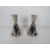 A pair of silver Chrisophersen short candlesticks, Norwegian geometric design having original label to base, each standing 10cm high.