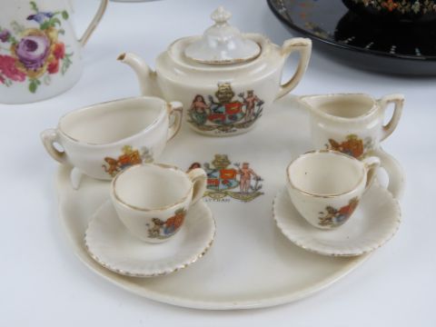 A quantity of assorted ceramics including Bavarian porcelain soup tureen, Royal Worcester cake plate, Royal Doulton 'Under the Greenwood Tree' plate, porcelain cup 'Presented....1874' a Royal Copenhagen pin tray, a hand painted 'Greek' border cup with similar 'Victoria' saucer and a Wedgwood table lighter etc.