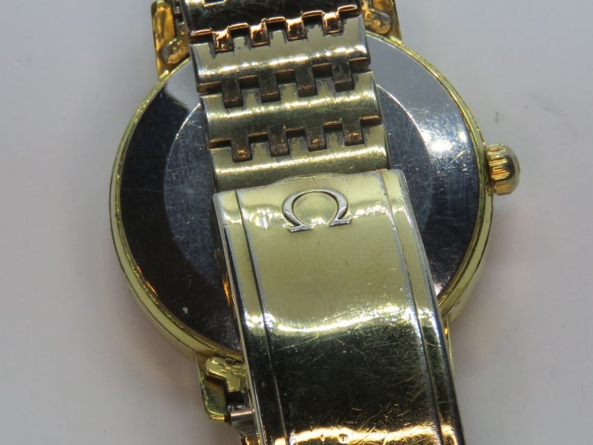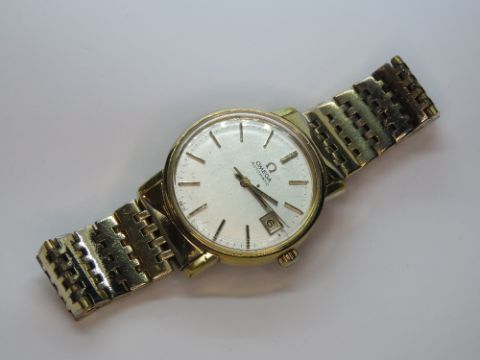 A vintage Omega Automatic gold plated wristwatch having silvered dial with date aperture, yellow metal hands and batons, on original strap.