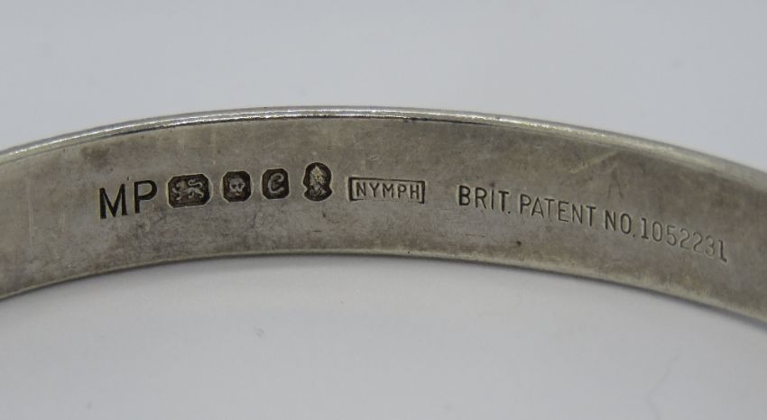 A HM silver bangle having overlapping oval pattern upon, London Jubilee hallmark upon, 5.2cm dia.