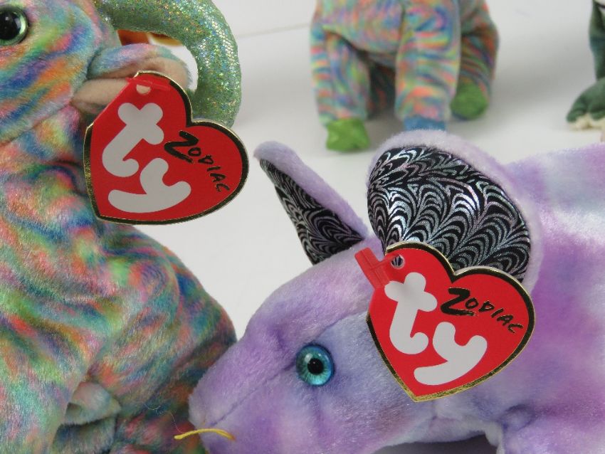 Ty Beanie Babies/Beanie Bears; Zodiac edition 'Dragon', 'Rat', 'Rabbit', 'Ox' and 'Goat' (x 2). Six items, all with tags.