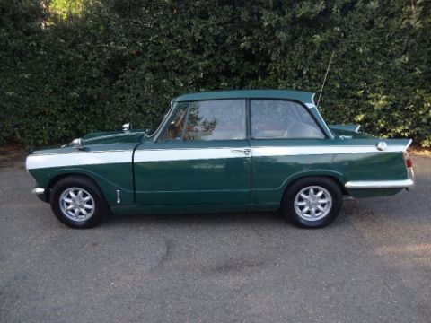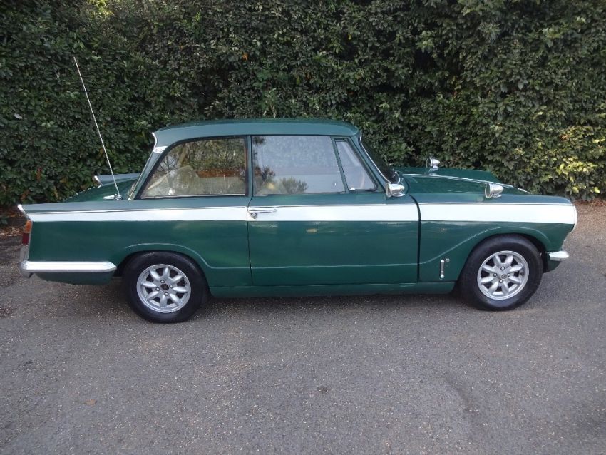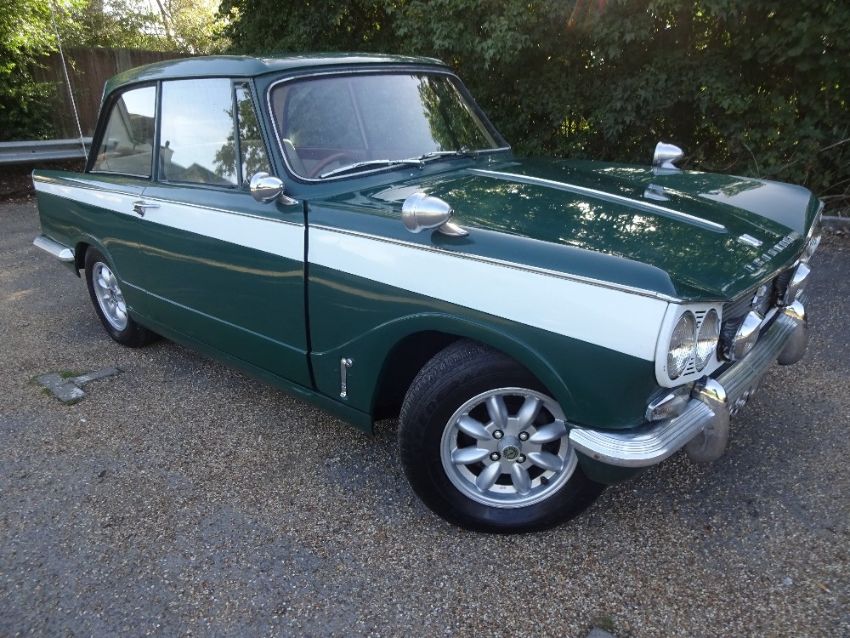 This 1963 Triumph Vitesse '6' is a very early factory produced model having been introduced one year earlier in 1962. It has been locally owned for the last 6 years & only 5 former keepers. We have a folder of service receipts, invoices, previous Mot's & original owners hand books & workshop manuals etc. Finished in original 'Laurel' green with white stripes & contrasting cream interior with wooden door cappings & steering wheel along with 8 spoke 'Minilite' alloy wheels with nearly new radial tyres it looks stunning! It has been well maintained & drives very well & although tax & Mot exempt it has an Mot until August 2021. This is a very useable car mechanically very good with some paint imperfections however very acceptable for a 57 year old car.
