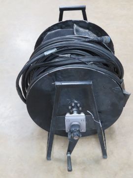 An RAF engineering fibre optic cable wheel, with cable.