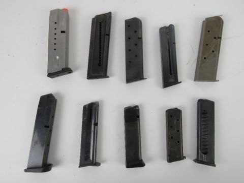 A quantity of ten assorted pistol magazines inc a Colt .22LR and two marked Smith & Wesson.