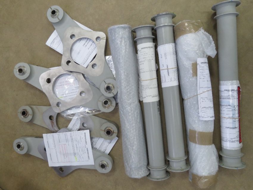 Selection of RAF Westland helicopter spares including rotator shafts and rear rotator plates, with release papers .