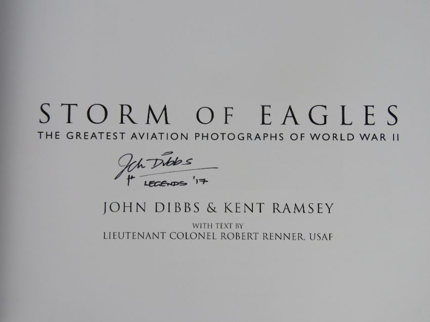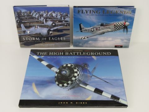 Three photographic books by John Dibbs, each signed by the author, entitled 'Storm of Eagles', 'Flying Legends' and 'The High Battleground'.