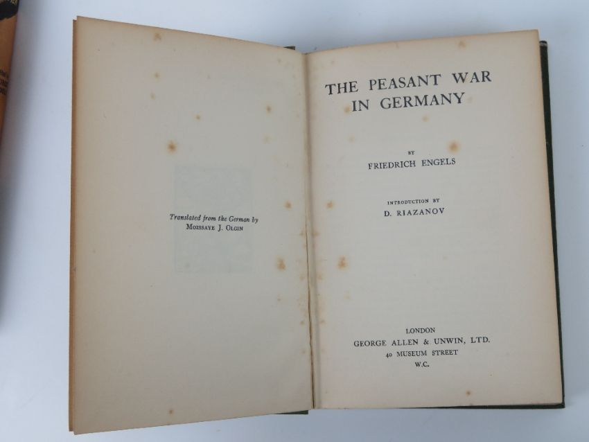 Book; 'The Peasant War in Germany' by Friedrich Engels, together with Fighting Men edited by Patrick Pringle, also a vintage Henley gas mask, a/f. Three items.