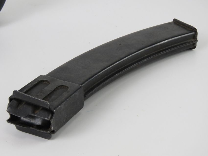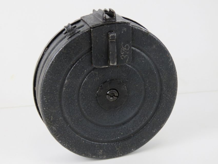 A PPSH-41 drum magazine together with a PPS-43 stick magazine. Two items.