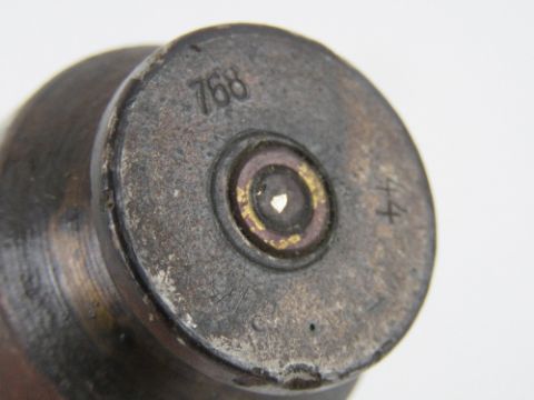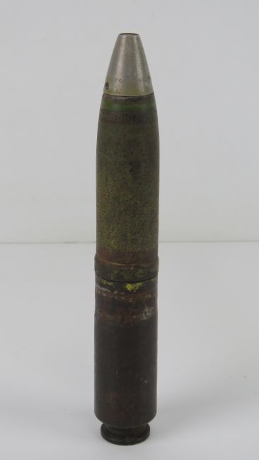An inert WWII German 30mm shell with fuse dated 1944, with some original paint and makers mark aux.