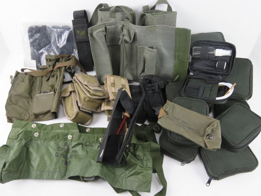 A quantity of assorted cleaning kits, pouches, ammo pouches and bandoliers.