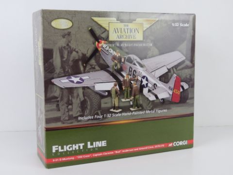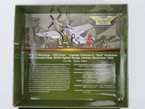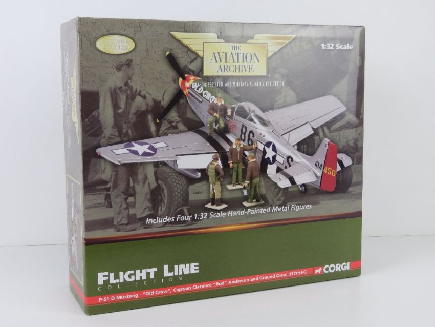 Corgi Scale Model 'The Aviation Archive'; 1:32 Scale P51D Mustang 'Old Crow' Captain Clarence 'Bud' Anderson and ground crew 357th FG. Includes four metal figures. Signed by C E 'Bud' Anderson. In box.