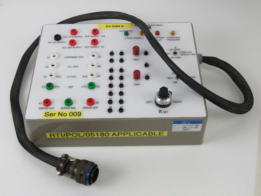 Nose wheel centring testing box with serviceable equipment conditioning label, from RAF Lossiemouth in Scotland, Eurofighter typhoon base.