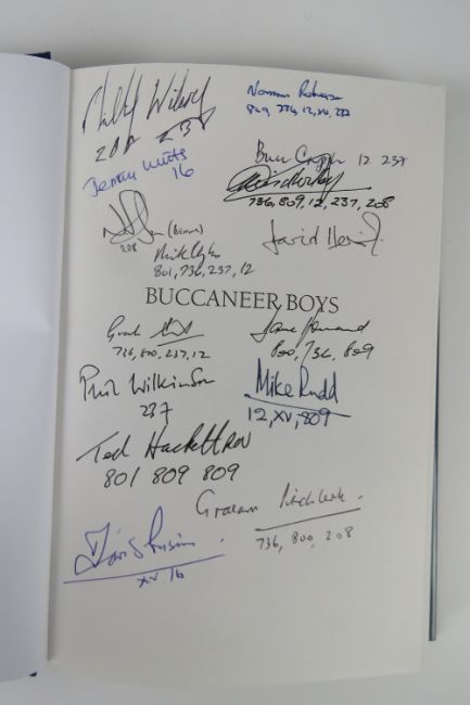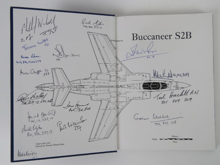 Buccaneer, three signed books all focusing on the Buccaneer bomber, entitled 'The Buccaneers', 'Buccaneer Boys' and 'Buccaneer' by various authors. Various signatures within inc Ted Hackett, Phil Wilkinson, Mike Knight, Mike Rudd, Jeremy Witts and others.