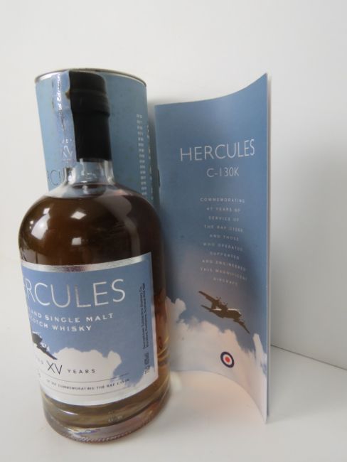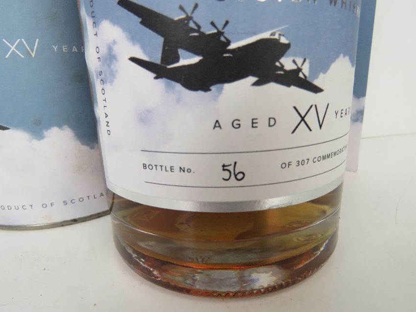 A rare commemorative 'Hercules' RAF whisky No 56 of 307, originally created and sold on the retirement of Hercules on behalf of the RAF Benevolent Fund. Box slightly a/f. With documents.