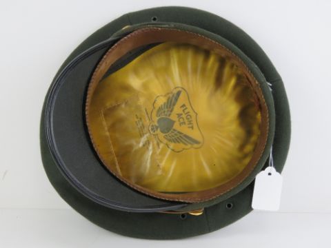 A US Military officers peaked cap made by ACE Manufacturing Co Texas, having gilt embroidered strap with buttons.