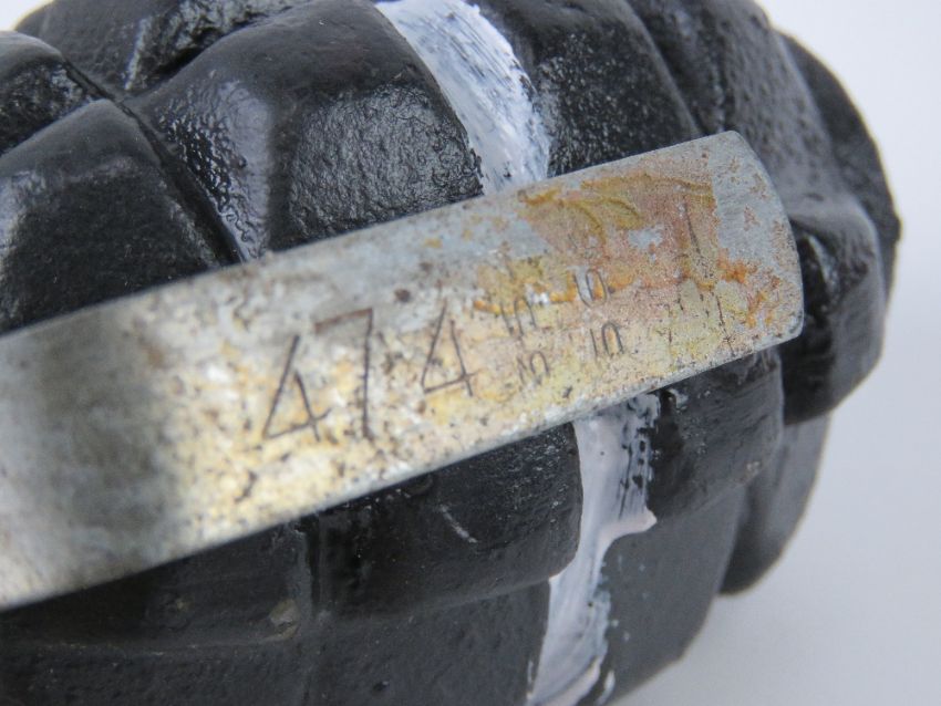 An inert L111 training grenade and an inert F1 Limonka grenade.