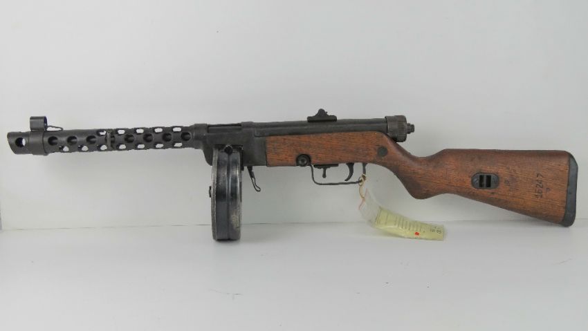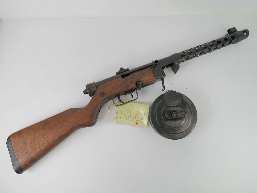 A deactivated Yugo M49 Sub Machine Gun, with moving metal replica bolt (under spring pressure, trigger, and fire selector, with removable drum magazine. With certificate.