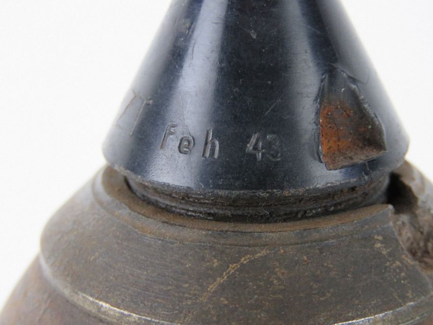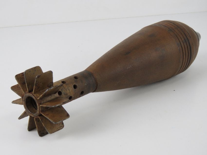 An inert WWII German 80mm Granatwerfer 34 Mortar,dated 1944 with fuse being dated 1943, 34cm in length.