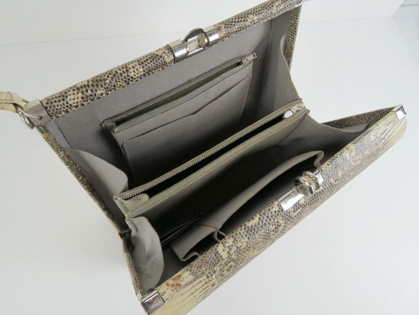 A vintage snake skin ladies handbag complete with python skin coin purse, 28cm wide.