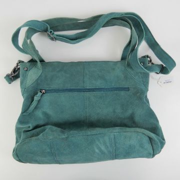 A vintage turquoise blue suede handbag.