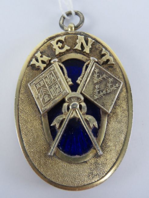 Masonic; a HM silver Standard Bearer collar jewel for Kent, having central blue enamel panel, retailed by Groneen Gillingham and hallmarked Chester 1927, 49.6g.