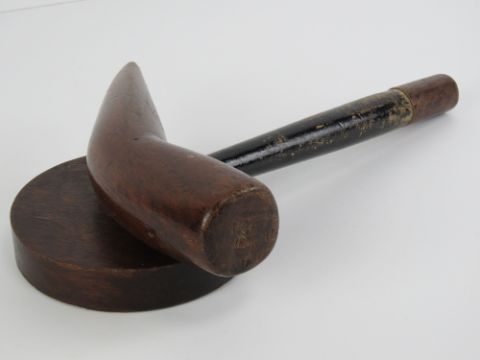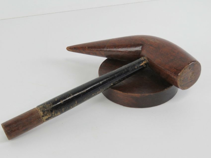 The Royal Antediluvian Order of Buffaloes (RAOB); An unusual ceremonial gavel in the shape of a buffalo horn, together with block. Provenance: From the collection of a member of various lodges since 1980s.