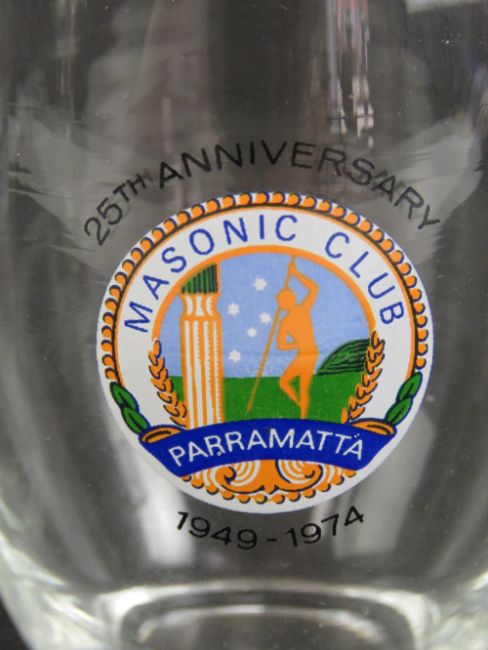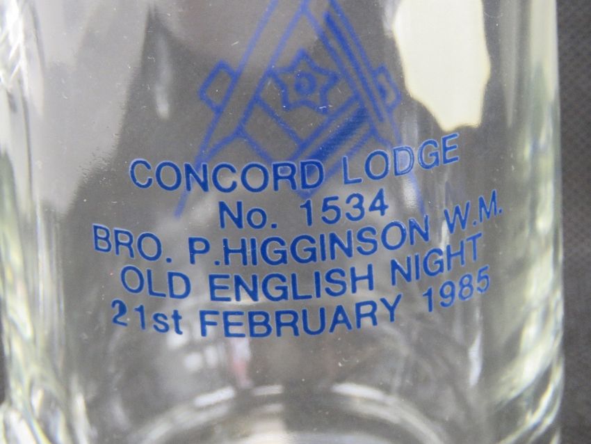 Masonic; A quantity of Masonic mugs and glassware including 25th Anniversary, Ladies Night, Harrow Weald Lodge, Southport Chapter Old English Knight 1968 etc. Six items.