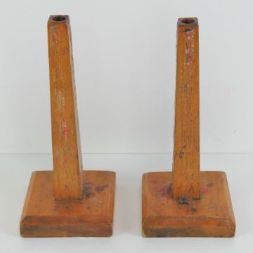 The Royal Antediluvian Order of Buffaloes (RAOB); a pair of wooden alter candlesticks standing 32.5cm high, base measuring 14cm wide. Provenance: From the collection of a member of various lodges since 1980s.