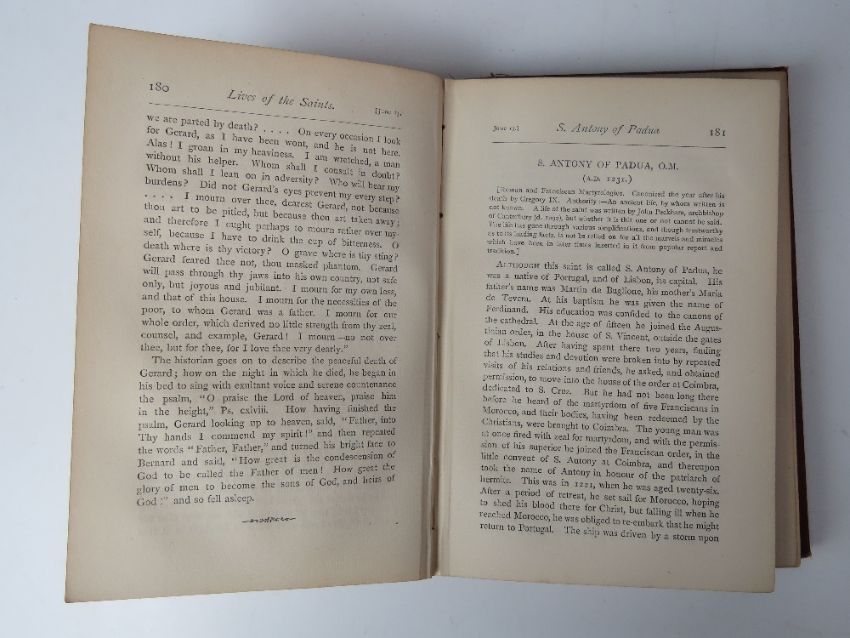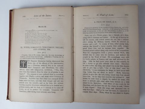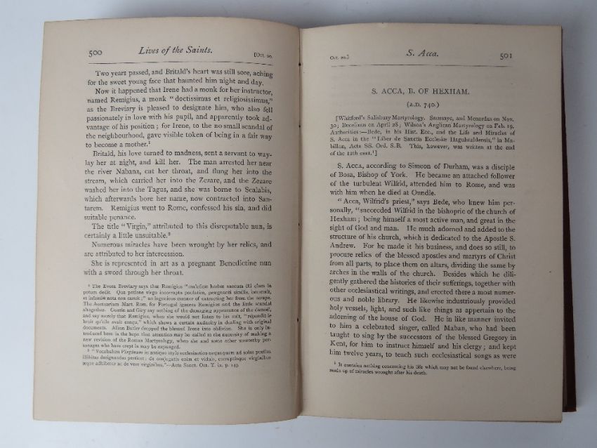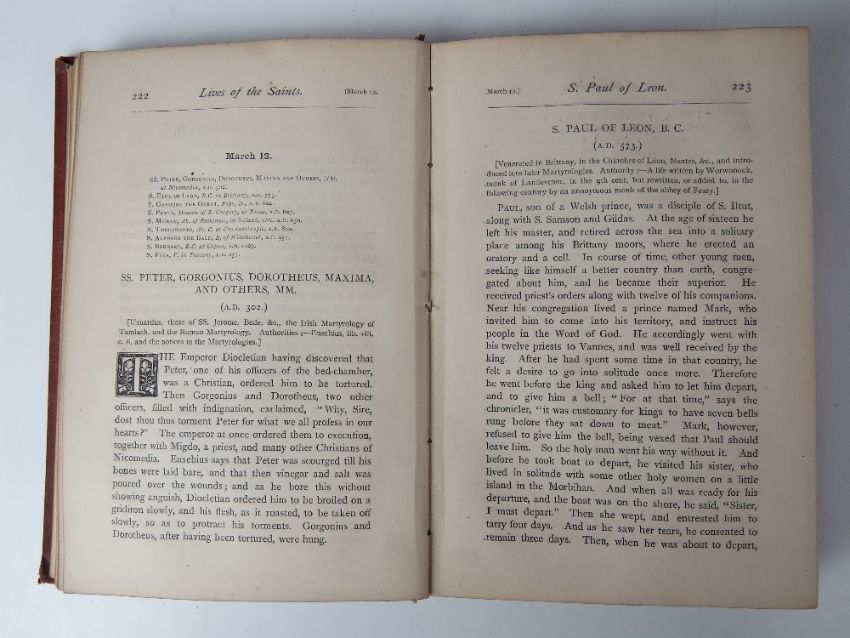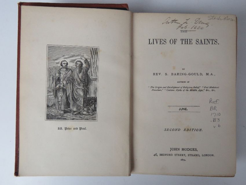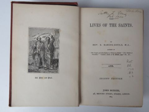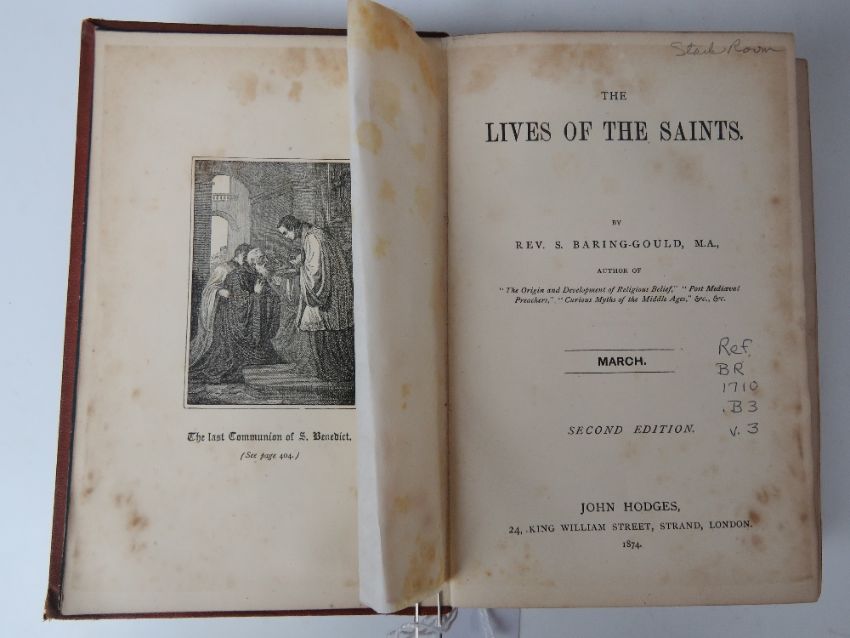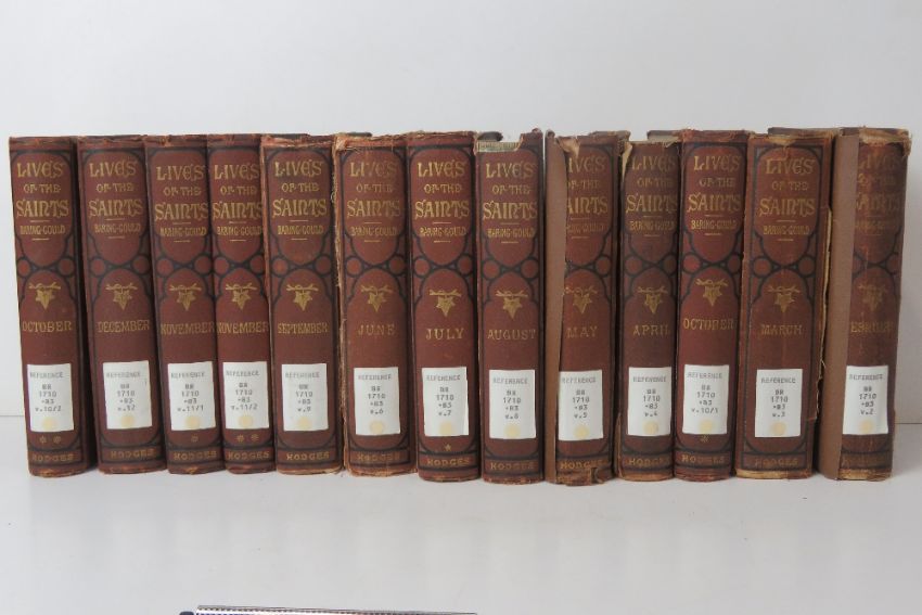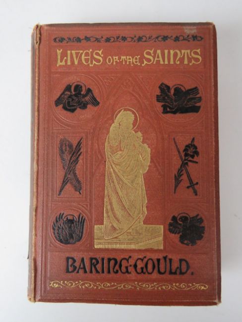 Books; Lives of the Saints by Rev S Baring-Gould. Cloth full bound and embossed gilded. Published by John Hodges Strand London 1877. In thirteen volumes. a/f. Ex-Libris Cathedral and Abbey of St Alban.