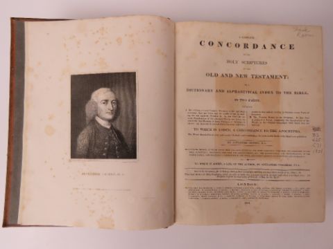 Book; Cruden's Concordance, a complete concordance to the Holy Scriptures of the Old and New Testament, by Alexander Cruden. Leather full bound. Published London 1824. Ex-Libris Cathedral and Abbey of St Alban.