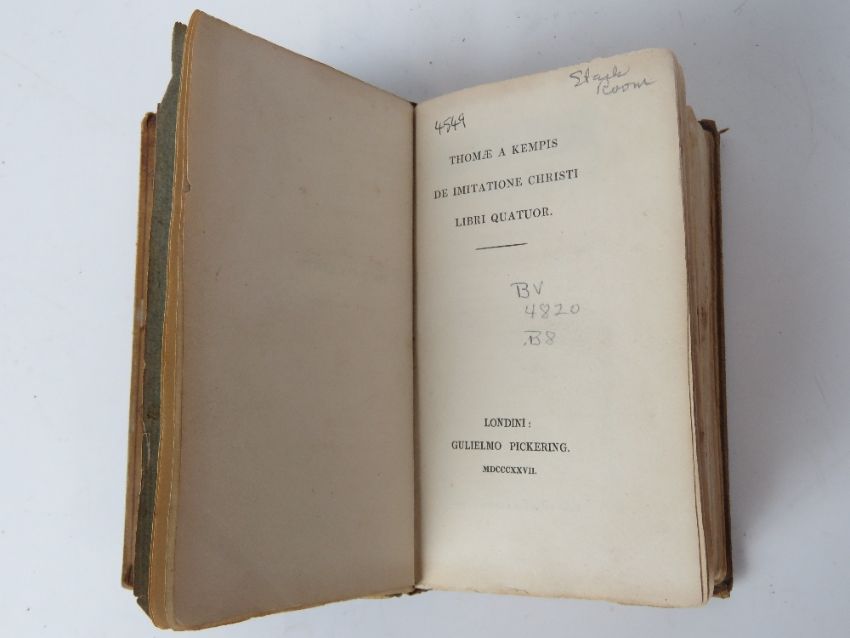 Book; The Imitation of Christ by Thomas Kempest. Leather full bound. Published London 1827. Ex-Libris Cathedral and Abbey of St Alban.