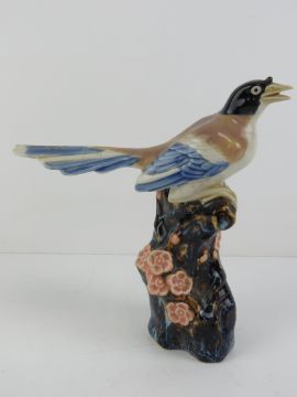 A vase in the form of a bird sitting on glazed 'tree stump' base, 19cm high.