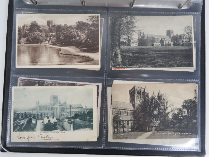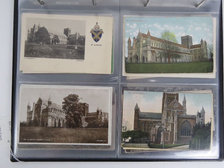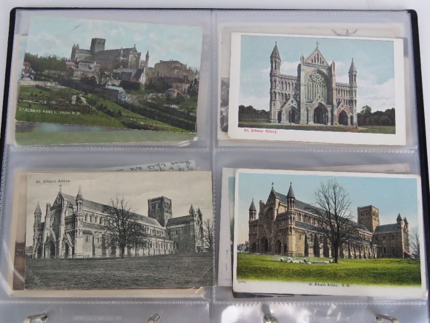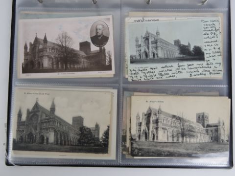 A collection of vintage postcard and photo cards depicting the exterior of the cathedral and Abbey Church of St Albans, seventy six in total.