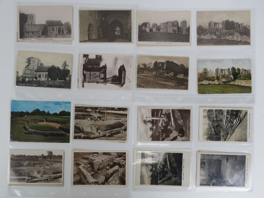 A quantity of vintage postcards and photo cards inc the St Albans Pagent 1907, the Marketplace, the Roman Theatre, the Hypocaust, the Nunnery, St Stephen's Church, St Michael's Church, Sandridge, St Saviour's Church, Gorhambury House. Approx one hundred and one in total.