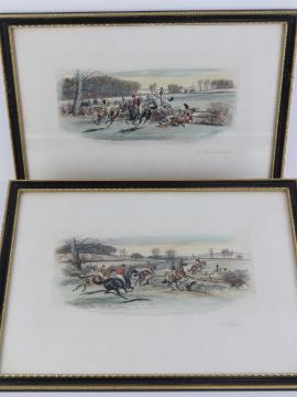 A pair of coloured racing prints 'The Favourite Beat' and 'O Rasper' by Harrington Bird, 28 x 41cm each within Hogarth frame.