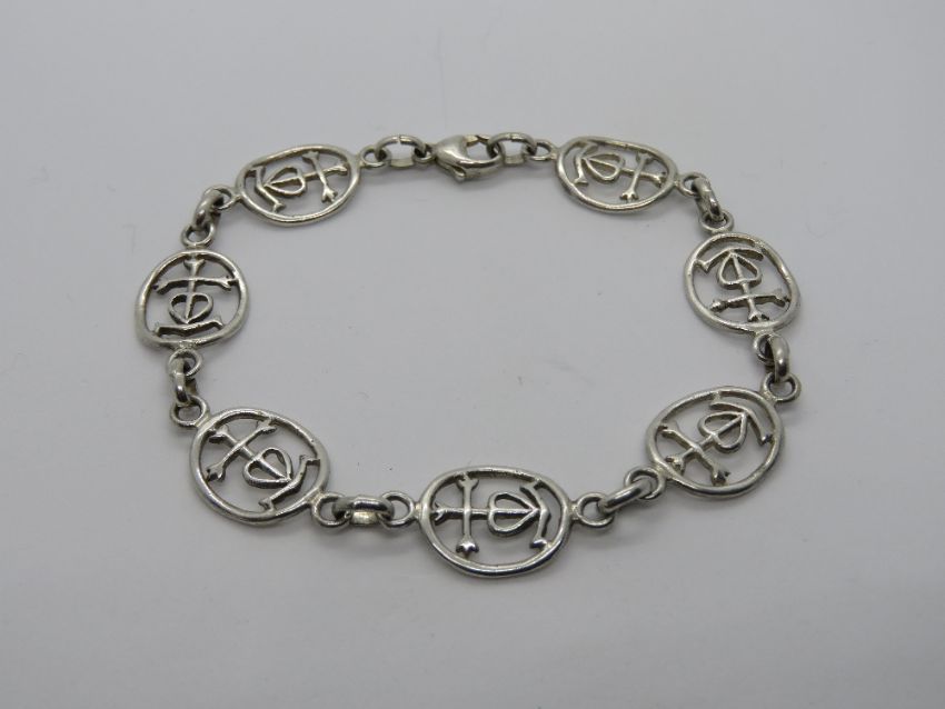 A silver bangle having anchor and heart design, stamped 925.