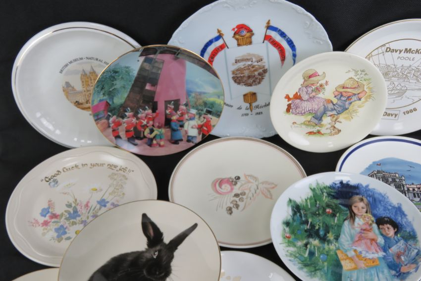 A Limoges commemorative plate 200th Anniversary of the French Revolution, together with a Danbury MInt 'Camberwick Green' plate and other decorative plates by Spode, Wedgwood, Royal Douton, and Poole. Fifteen items.