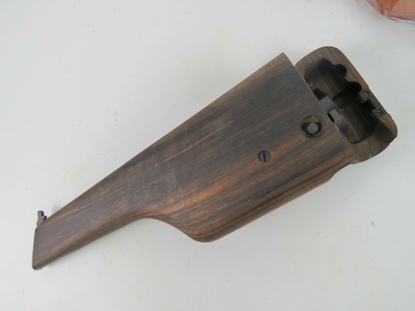 A reproduction Mauser C96 broom handle shoulder stock, with reproduction holster.