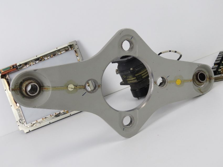 RAF pilots flight equipment including; digital LCD radar and control screen with cooling fan, printed circuit board and tail rotator control.