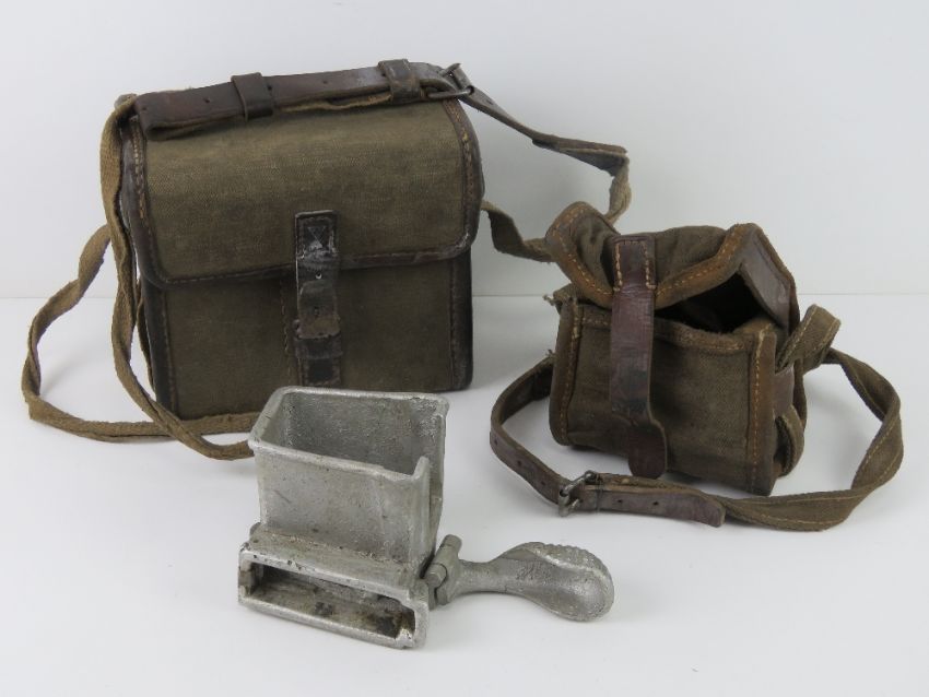 A ZB26/30 magazine loader in canvas and leather pouch, together with a ZB/26/30 pouch. Two items.