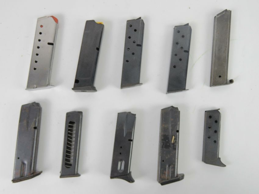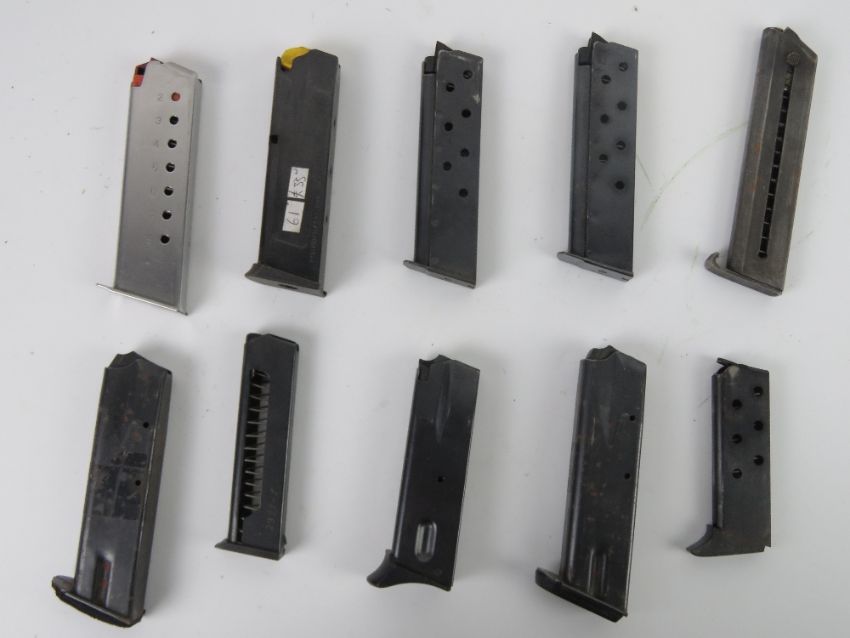 A quantity of ten assorted pistol magazines inc three marked for Smith & Wesson.